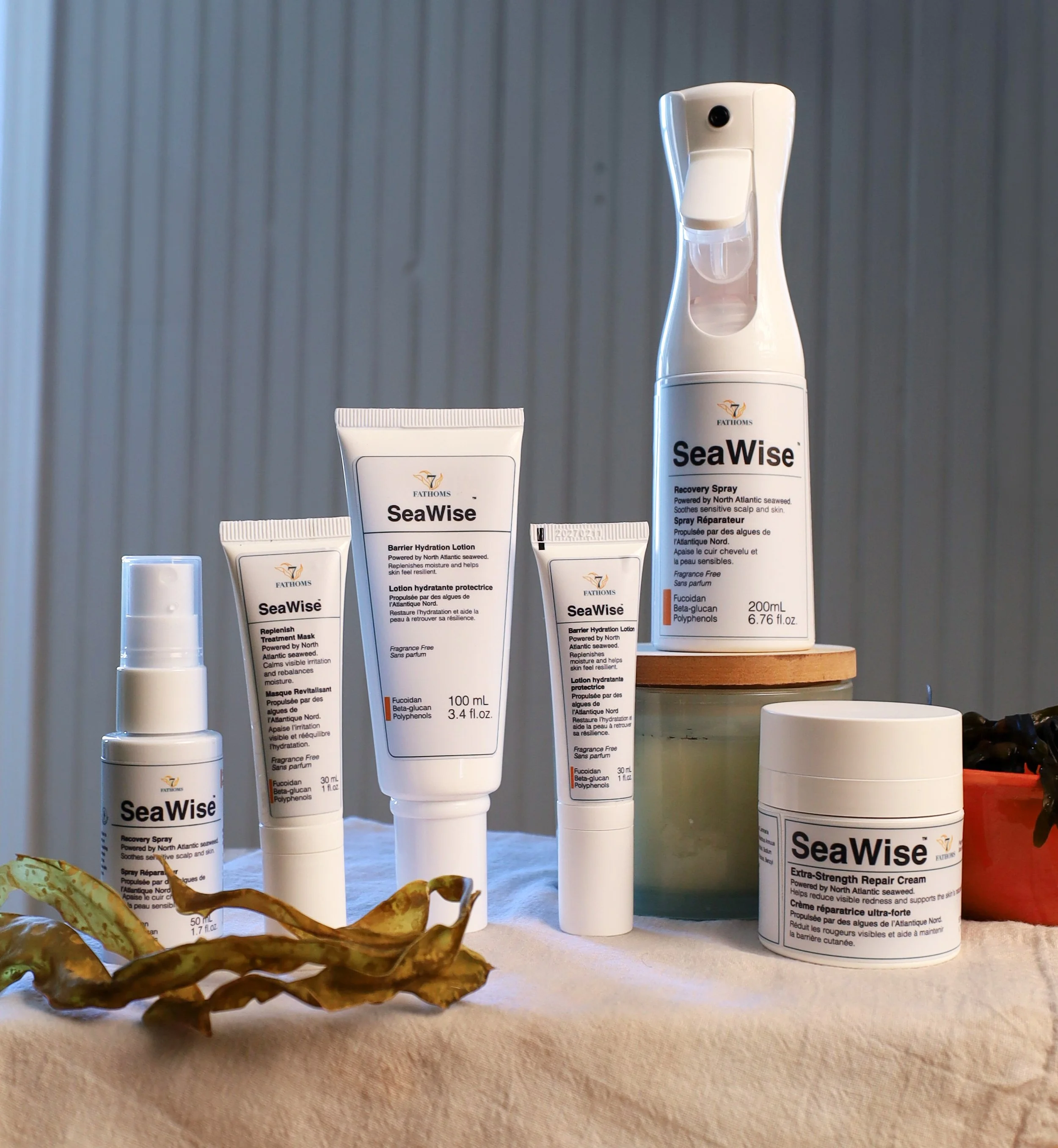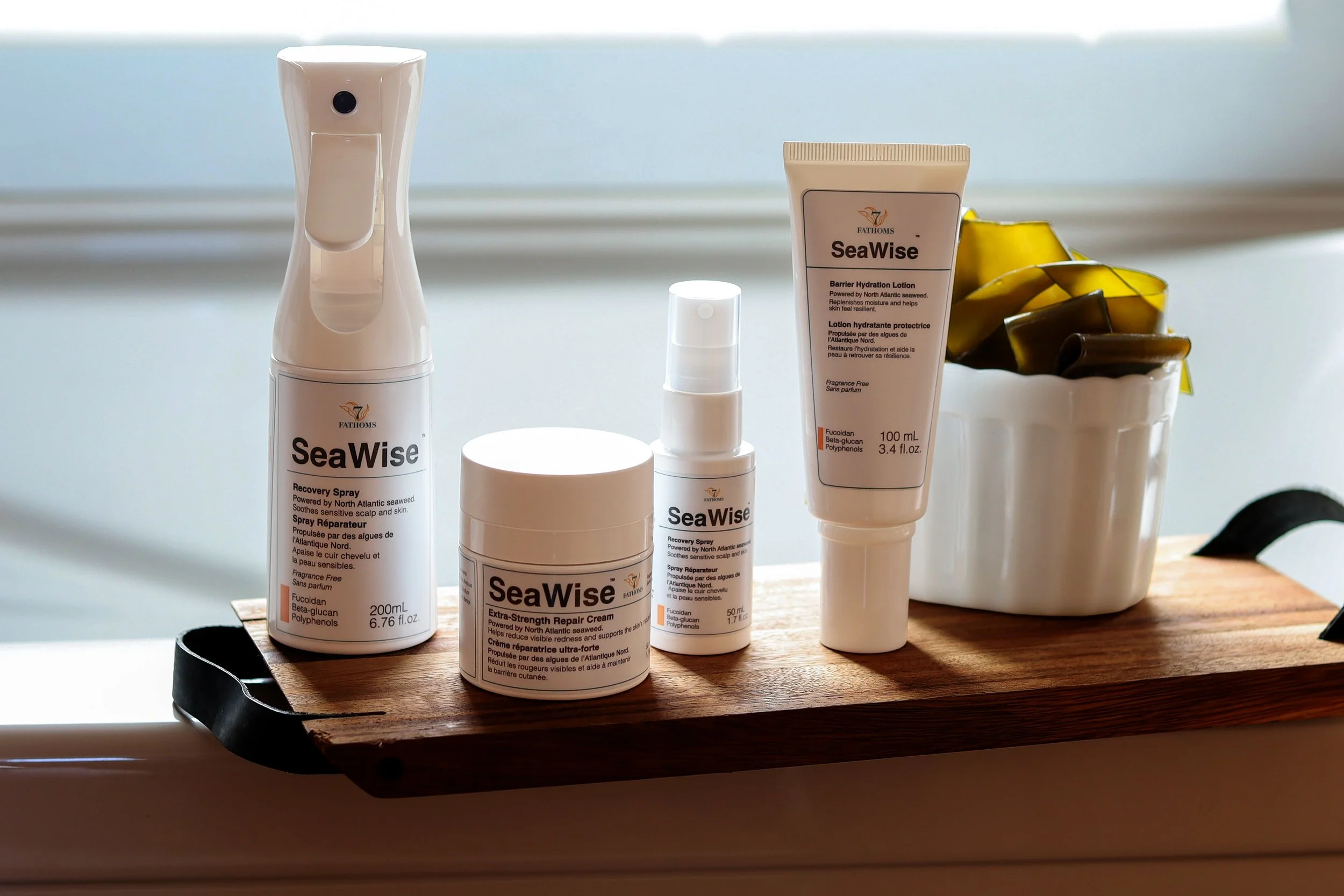 Wild seaweeds, Laminaria digitata and Fucus vesiculosus (bladderwrack), selected from intertidal zones that are cold, nutrient-rich, and turbulent, are naturally rich in marine bioactives - fucoidan, beta-glucans, and polyphenols - known to support sensitive skin and strengthen the skin barrier.